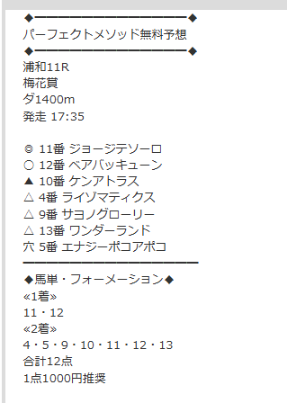 小倉大賞典予想的中ありがとうございました。 買い目画像もPAT画像もスクショ撮り忘れてしまったけど 711倍を3連単10点1点500円で的中 35万5500円、回収率も異常な数値… 先週知ったけど、平場も多めに予想出しているし、今週は先週以上に稼げそうな感じだな。