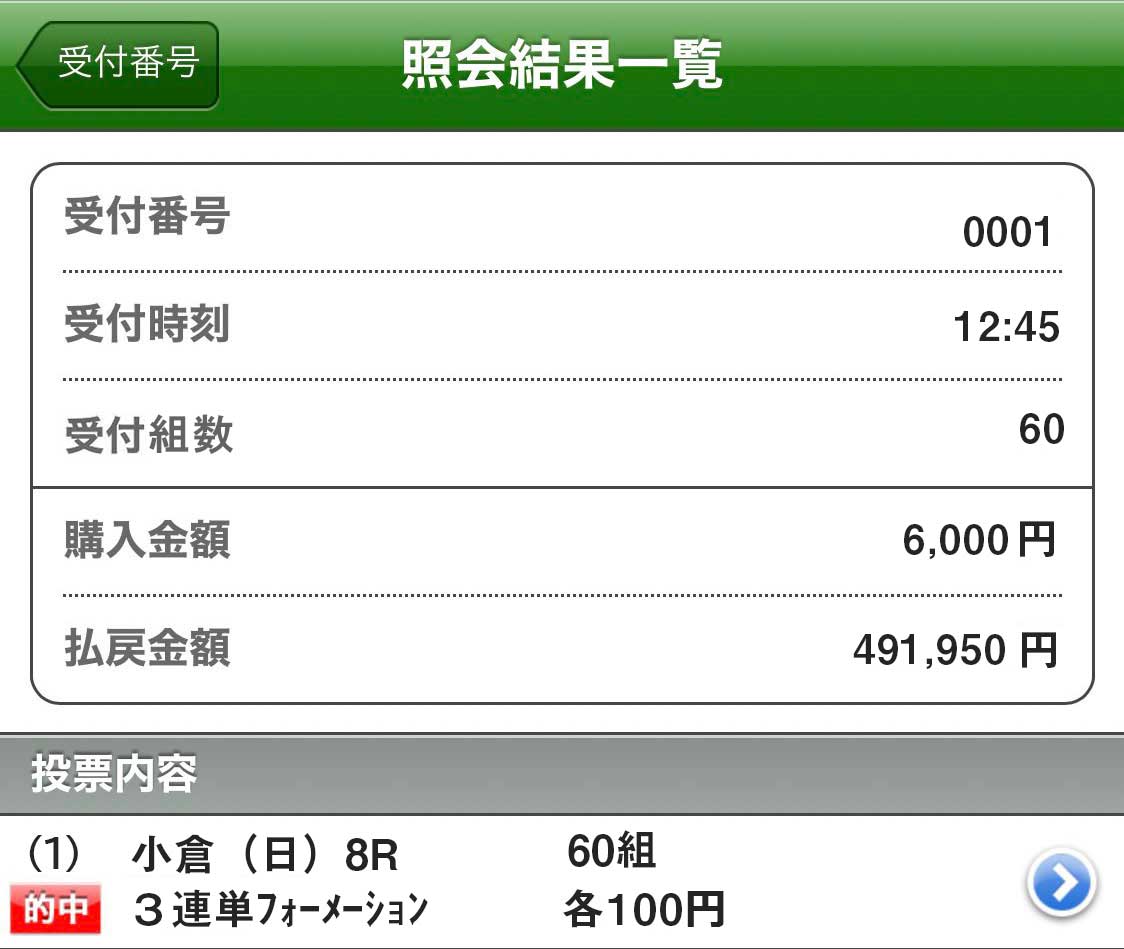 週末的中報告できませんでしたがようやく、本当にありがとうございました。 生活費無くて切羽詰まって地方競馬やりましたけど一撃50万で生き延びる事ができました。