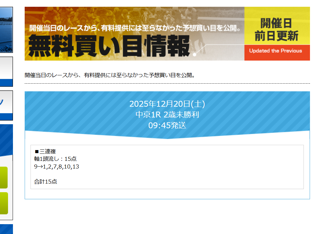 ※登録がない予想サイトなどがあればお問い合わせまでご連絡をお願いします。※